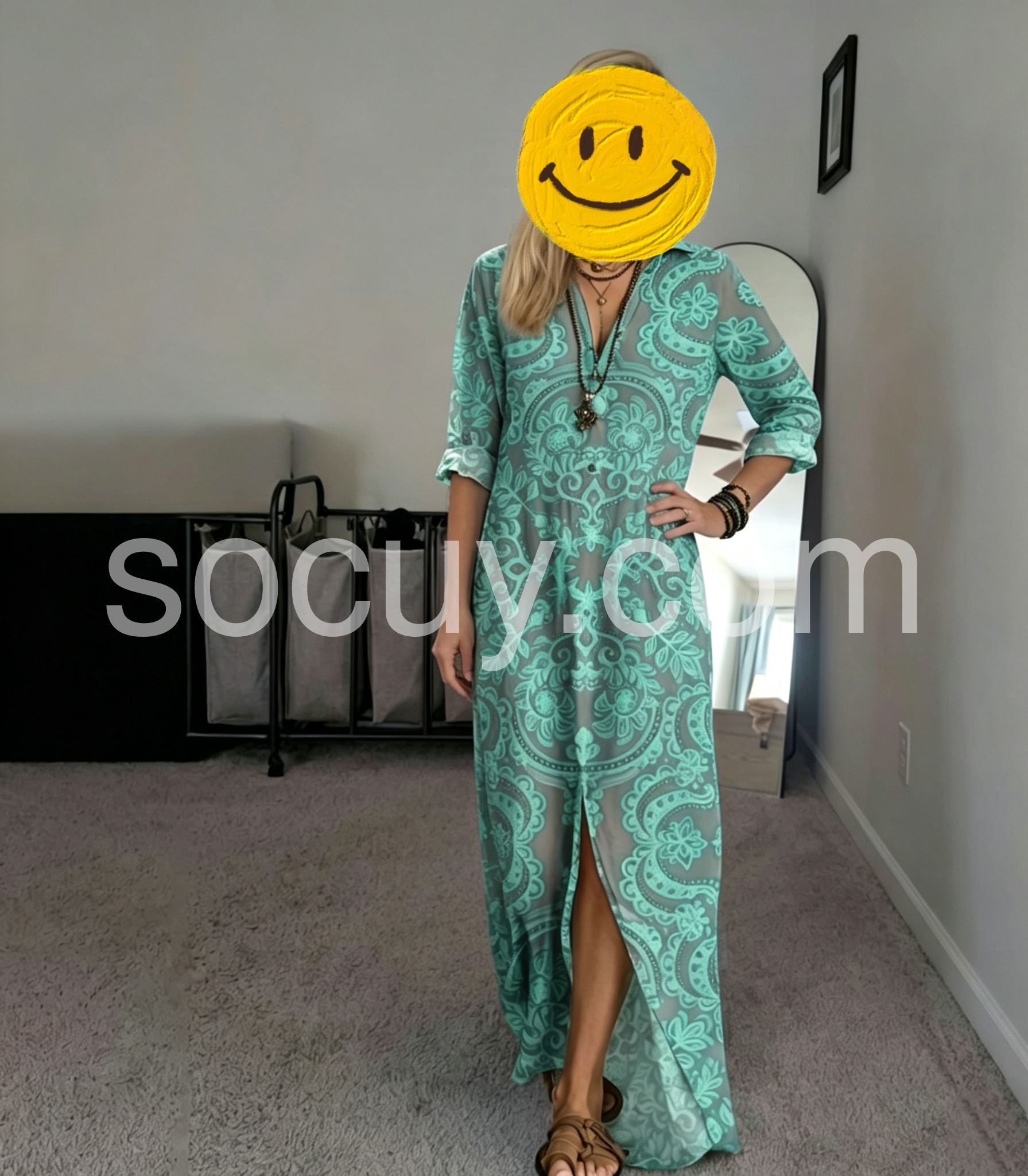 Hey besties, this boho maxi dress is the ULTIMATE vacation piece that fixes your "frumpy summer dress" pain point! Tired of dresses that don’t move with you? The flowy silhouette skims over curves, while the side slit solves the "walking restriction" issue.