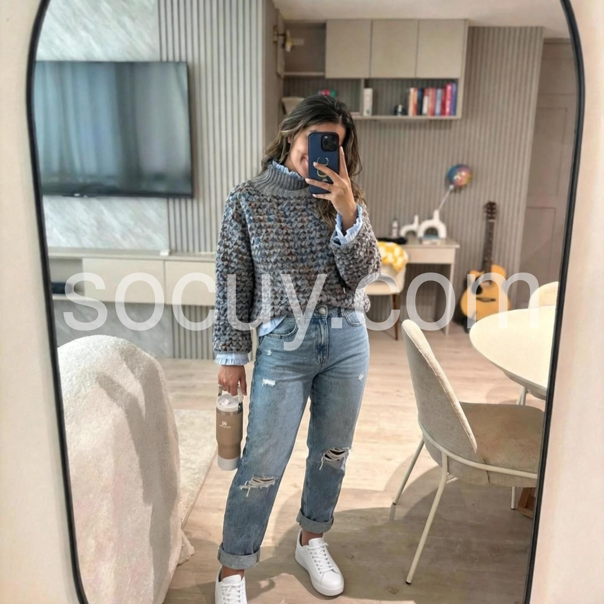 This blue long sleeve color block sweater is crafted from soft knit fabric for a cozy feel. The color blocking design adds a touch of modern style, while the long sleeves provide warmth for cooler days. Perfect for adding a pop of color to your wardrobe while staying comfortable and chic.
