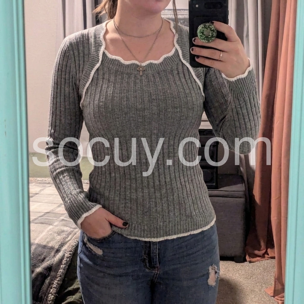 Stay cozy and stylish with our Grey Square Neck Long Sleeve Sweater. Made with high quality materials, this classic sweater offers a snug fit and an elegant square neckline. Enjoy the warmth and comfort of long sleeves, while looking effortlessly chic. Perfect for any occasion, this sweater is a must-have for your wardrobe.