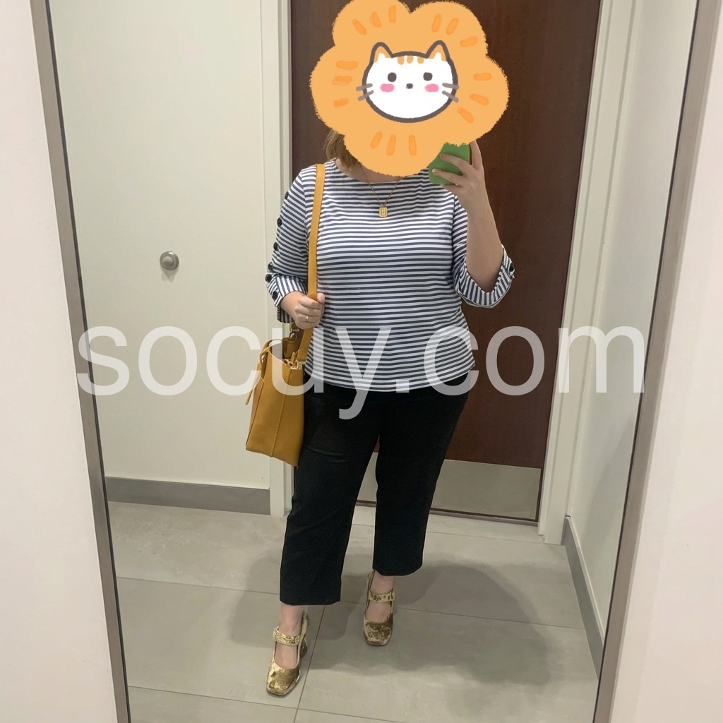 This blue and white striped top features a relaxed fit with a round neckline. Three-quarter sleeves with button details and rolled cuffs. Lightweight fabric perfect for casual wear. Ideal for beach days or everyday outfits. Timeless nautical style.