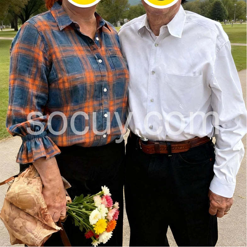 This blue check button-down shirt features elegant ruffle cuff sleeves, blending classic style with a modern twist. Crafted for a refined look, it offers a tailored fit that enhances your silhouette while providing comfort throughout the day. Ideal for professional settings or casual wear, this shirt adds a subtle yet distinctive detail that elevates any outfit.