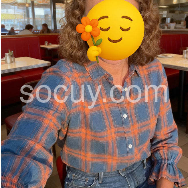 Blue Check Button Down Shirt with Ruffle Cuff Sleeves
