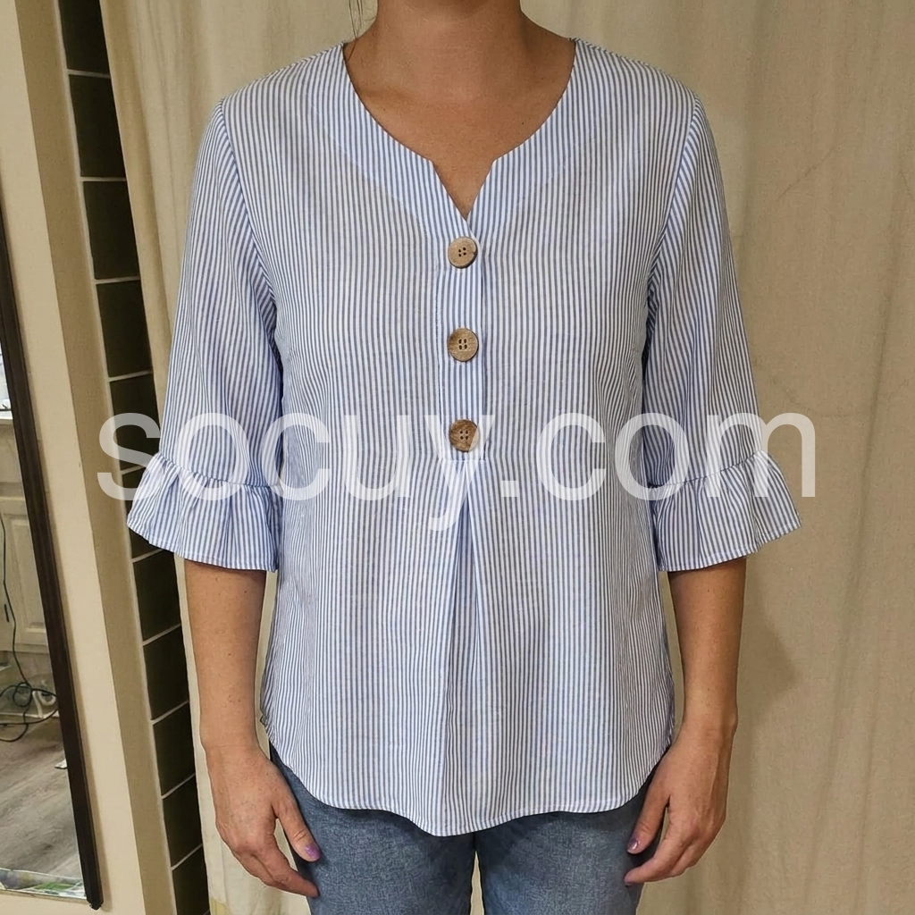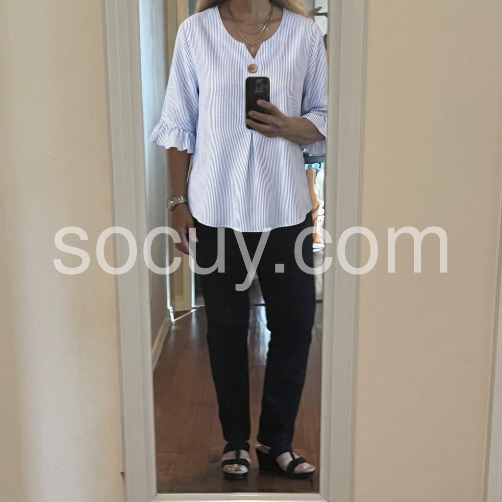 As a designer, I crafted this blouse to solve the common pain point of "too casual or too formal" daily tops. The notched V-neck flatters all necklines, while the ruffled cuffs add a feminine touch without being overly frilly.