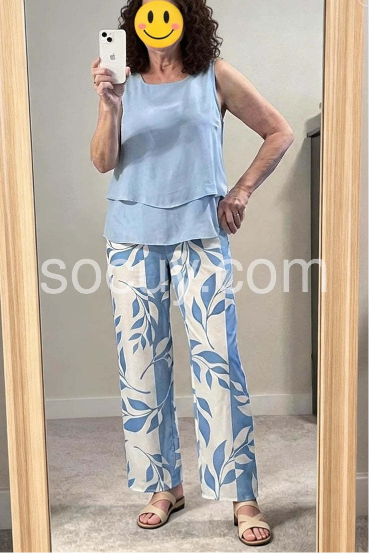 Get your summer style on point with this Blue Plant Print Square Neck Two Piece Set. Made with a stunning blue plant print design, this set features a square neck and is perfect for any warm day. Stay trendy and comfortable all day long with this must-have set.