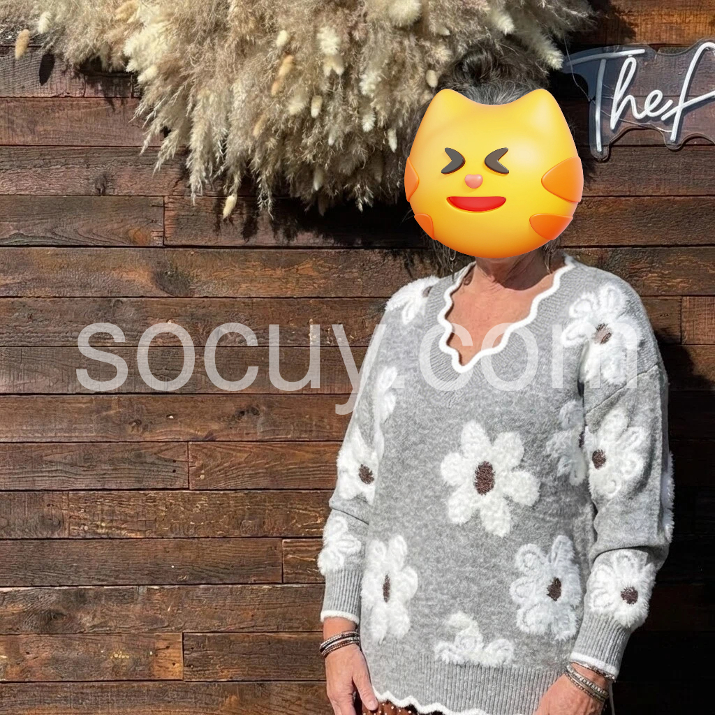 This Grey V-Neck Floral Print Sweater will keep you fashionably warm all season. With its classic v-neck design and floral print, this sweater has the perfect combination of style and comfort. Perfect for any occasion, this sweater is sure to keep you looking stylish.