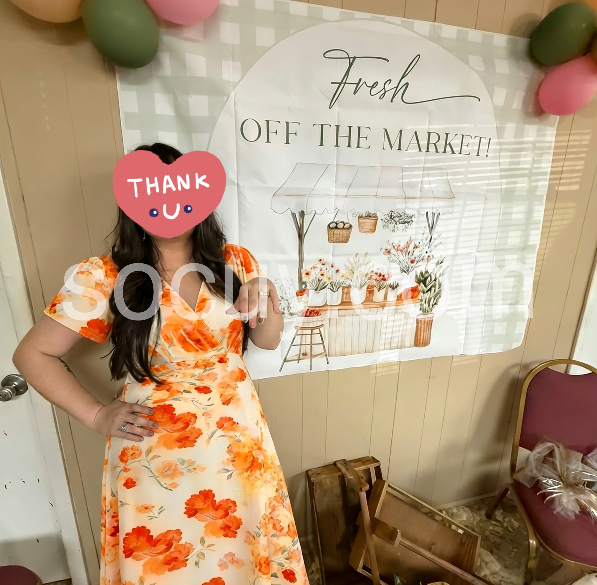 The vibrant orange watercolor floral print on a soft white base is eye-catching and cheerful.