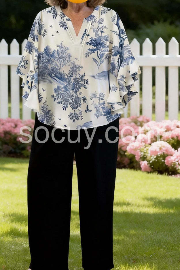 Elevate your wardrobe with this sophisticated blue toile print blouse, featuring a timeless pattern that seamlessly transitions from office to weekend wear. The classic toile design brings refined elegance to any ensemble, while the structured blouse silhouette ensures a polished appearance. Crafted for versatility, this piece pairs effortlessly with tailored trousers, skirts, or denim. The intricate print detail adds visual interest without overwhelming your look, making it an essential addition for those who appreciate understated luxury and enduring style.