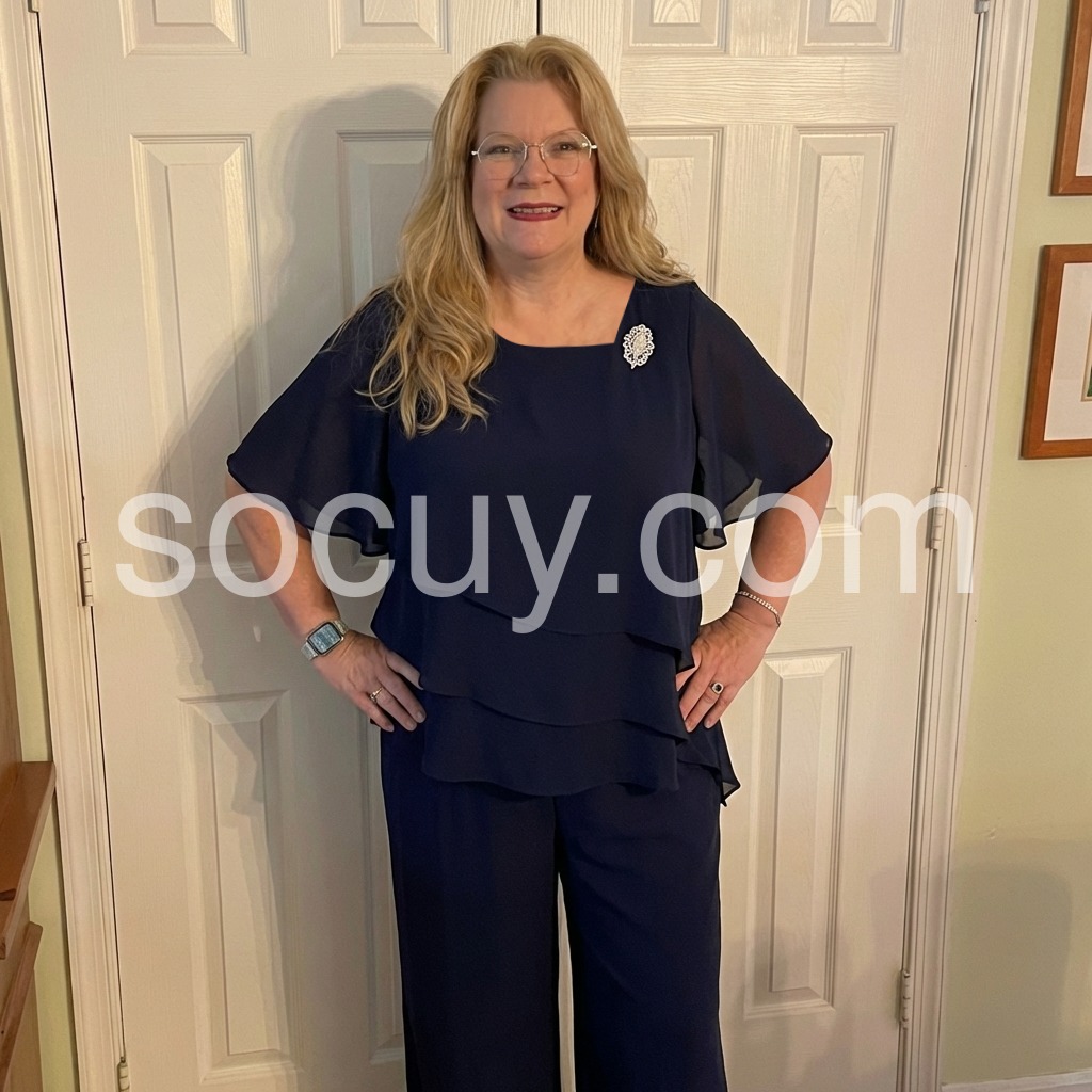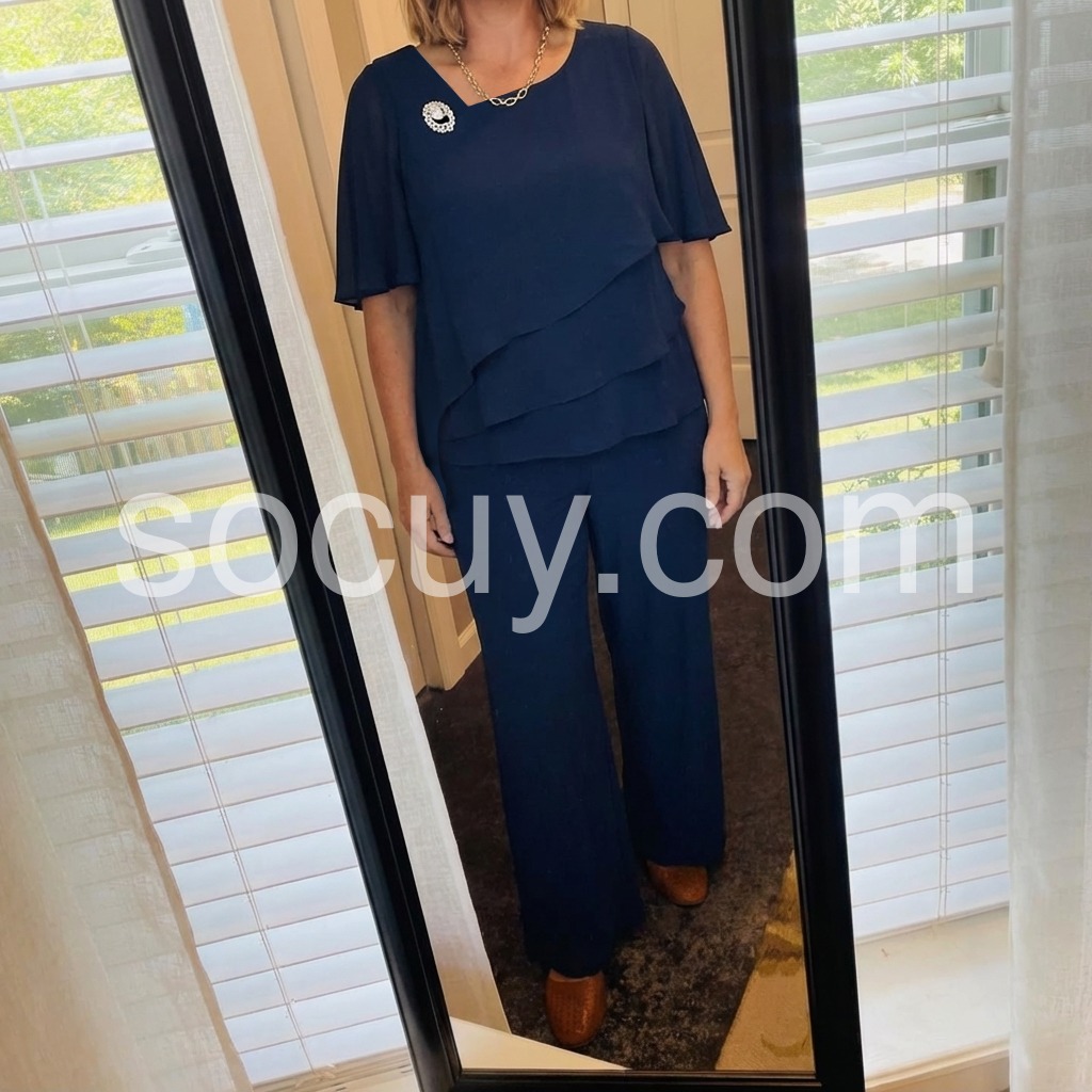 This coordinated set features a flowy layered top with an asymmetrical hem and matching wide-leg pants. Crafted from smooth, comfortable fabric perfect for warm days. The clean lines and classic navy hue offer timeless style. Ideal for casual outings or relaxed events. Effortlessly chic and easy to wear.
