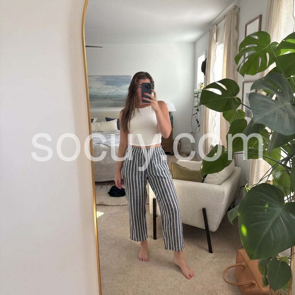 These Classy Striped Elastic Waistband Pants offer both style and comfort. Made with a stretchy waistband and chic striped design, these pants are perfect for any occasion. The elastic waistband provides a customizable fit for all body types, making these pants a must-have addition to any wardrobe. Elevate your look with these sophisticated and versatile pants.