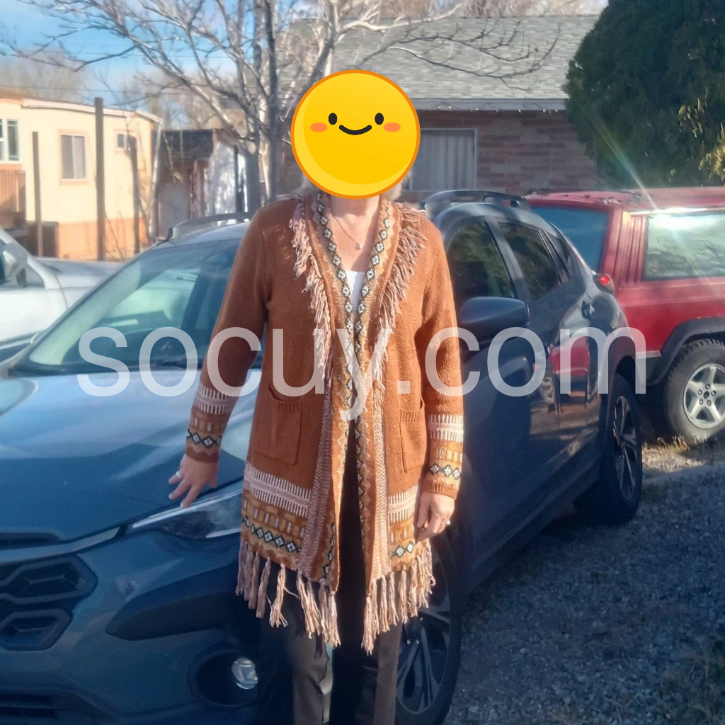 This trendy brown side pocket cardigan is a must-have for any fashion lover. Its versatile design and convenient side pockets make it both stylish and functional. Crafted with high-quality materials, it provides both comfort and durability. Stay on trend and cozy with this must-have addition to your wardrobe.