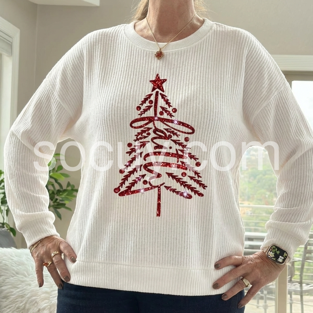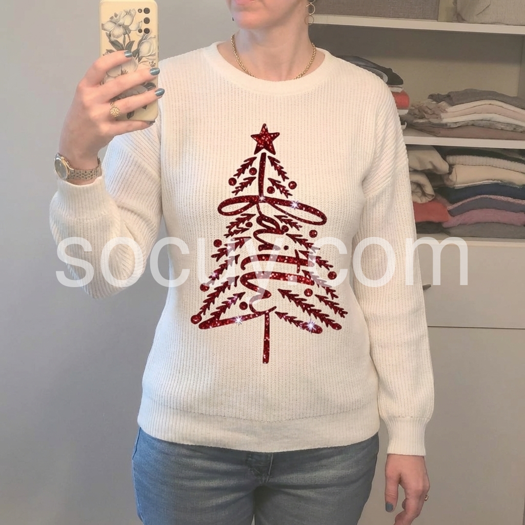 Elevate your festive wardrobe with this striking Christmas Tree Print Top, featuring a vibrant red base adorned with shimmering sparkle details. The classic round neckline offers timeless versatility, making it an effortless choice for holiday gatherings, casual celebrations, or seasonal styling. The eye-catching print combines traditional Christmas imagery with contemporary sparkle accents, delivering both festive charm and modern appeal. Perfect for layering or wearing standalone, this piece transitions