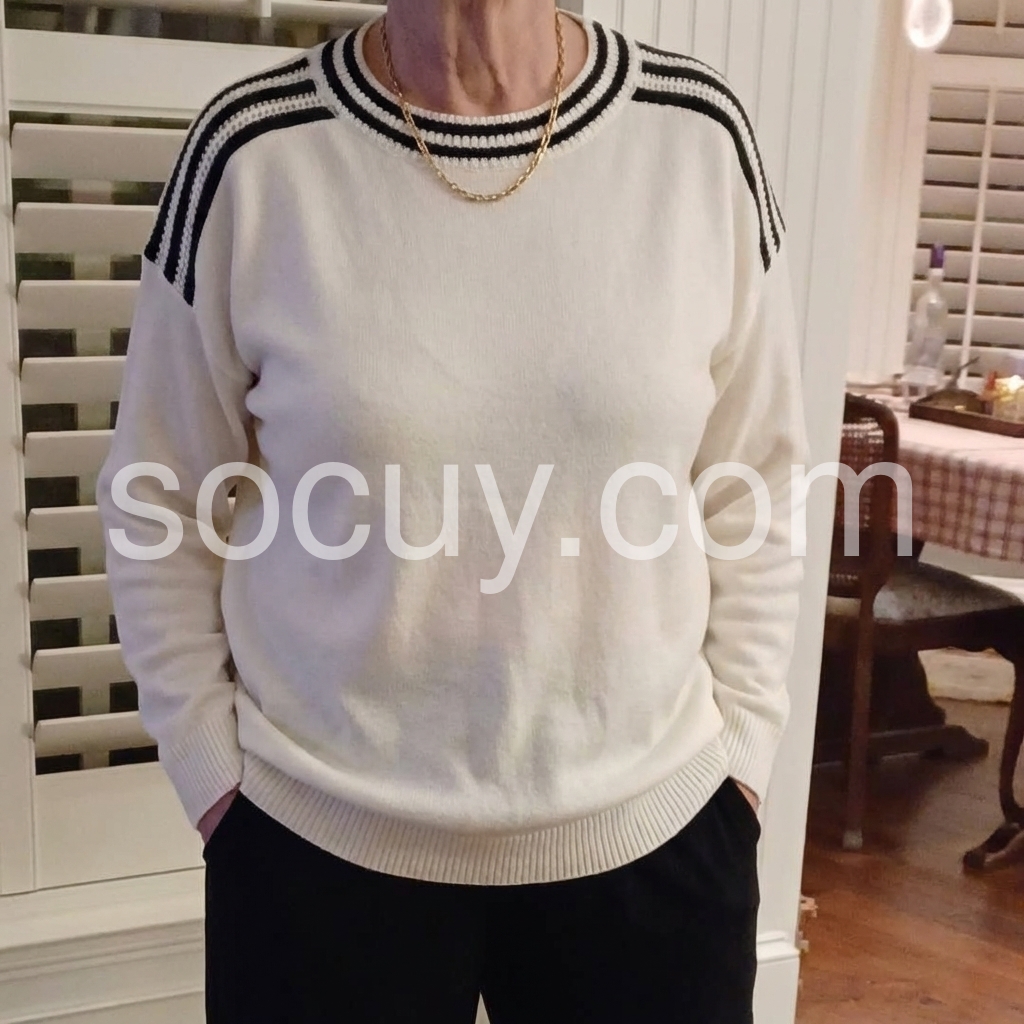 Experience the classic, sophisticated style of our Ivory Color Block Round Neck Sweater. Crafted with a round neckline and timeless ivory color blocking, this sweater effortlessly elevates any outfit. Made with high-quality materials, it provides both warmth and comfort, perfect for all-day wear. Add this staple piece to your winter wardrobe today.
