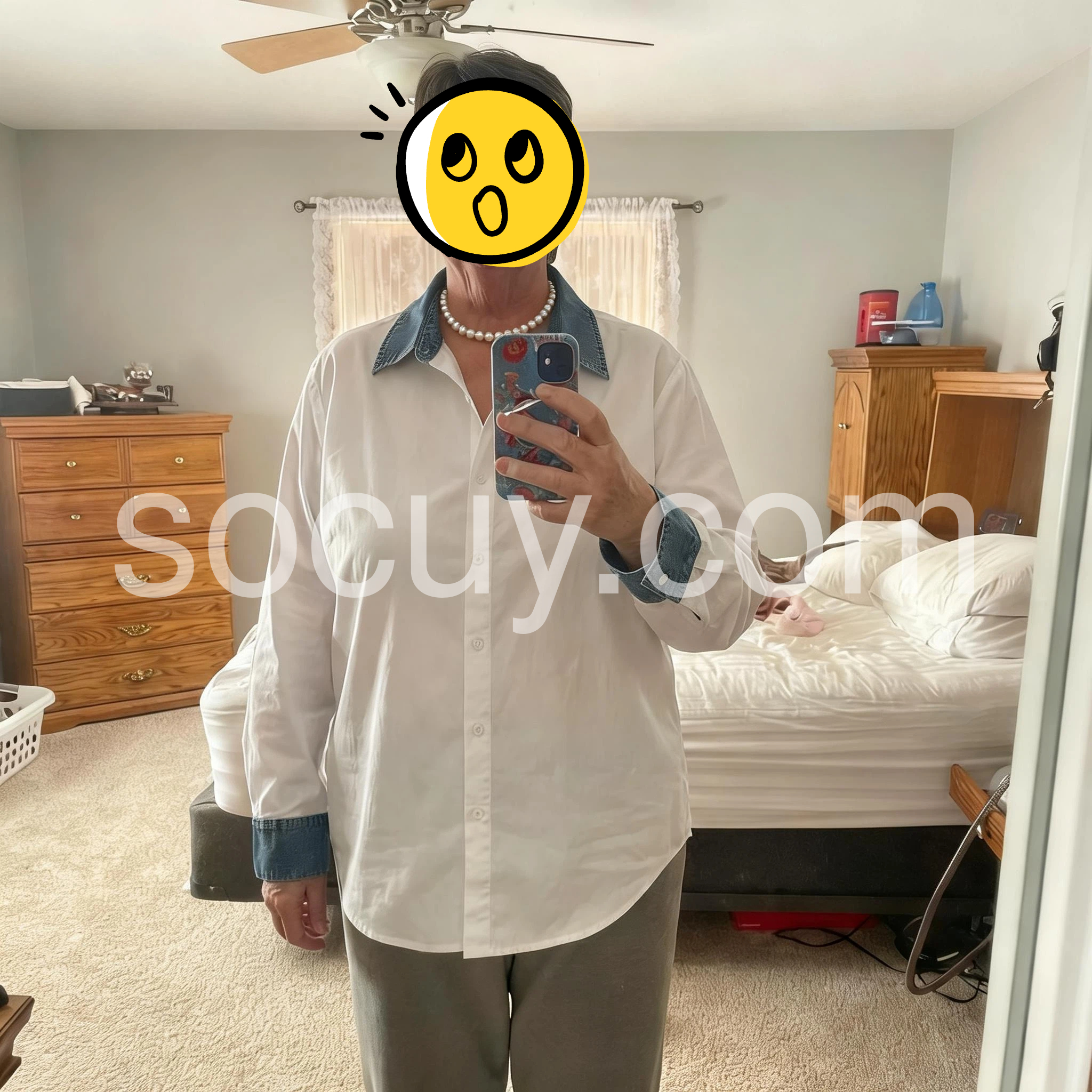 Elevate your casual wardrobe with this refined white denim shirt, featuring distinctive collar and cuff detailing that adds contemporary sophistication. Crafted from durable denim fabric, this versatile piece transitions seamlessly from weekend wear to smart-casual occasions. The structured collar and reinforced cuffs provide a polished silhouette while maintaining the relaxed comfort of classic denim. Perfect for layering or wearing solo, this shirt pairs effortlessly with jeans, chinos, or tailored trousers for a curated, intentional look.