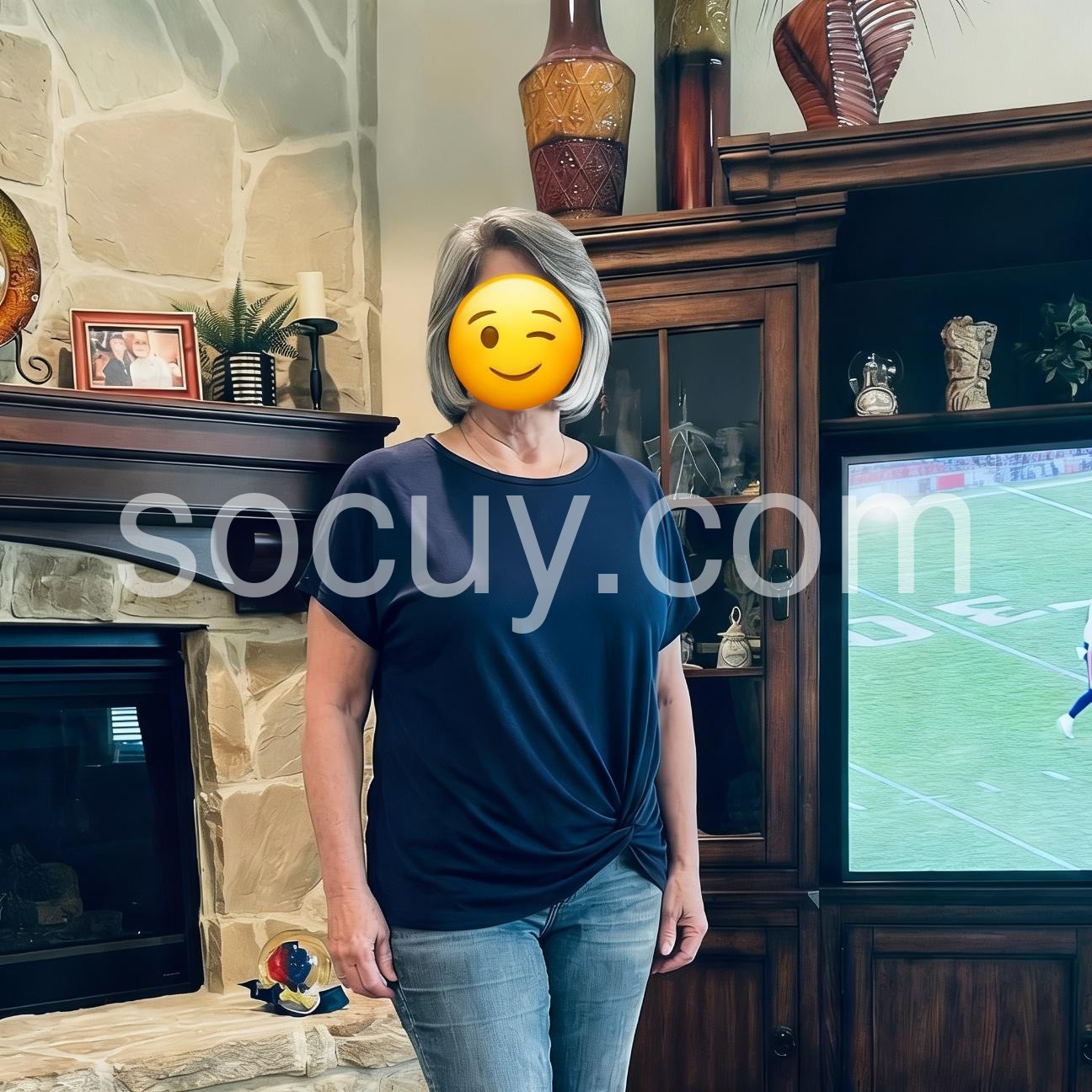This navy blue short sleeve top is a versatile and stylish addition to any wardrobe. The tres chic front knot exudes a total retro flair, while the crew neck and short sleeves create a casual and comfortable vibe. The below-the-waist silhouette makes it easy to pair with denim, slacks, and leggings.