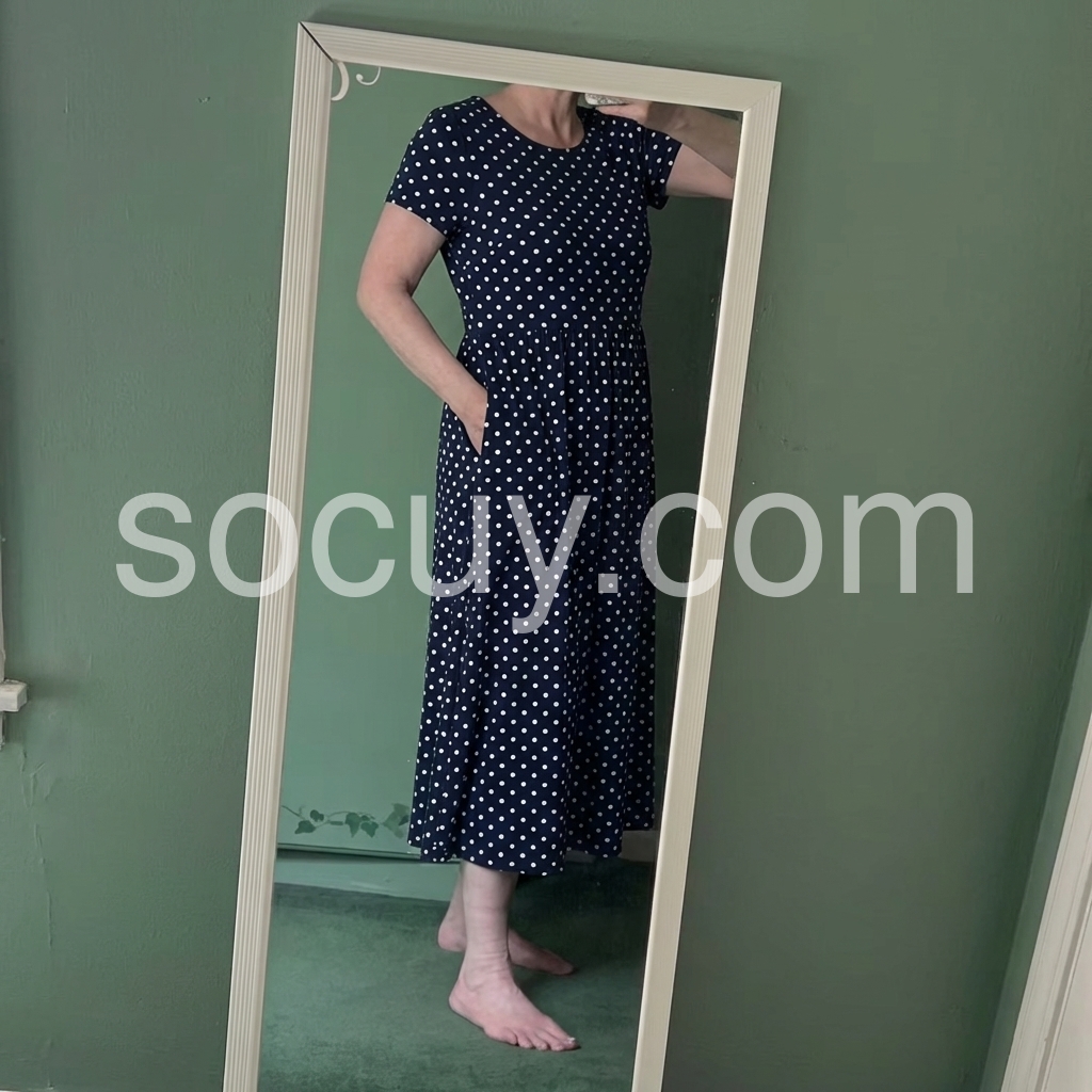 The flowy A-line silhouette and short sleeves keep you cool on hot days, while the round neckline adds a classic touch. And yes, it has pockets—perfect for stashing your phone or lip gloss!