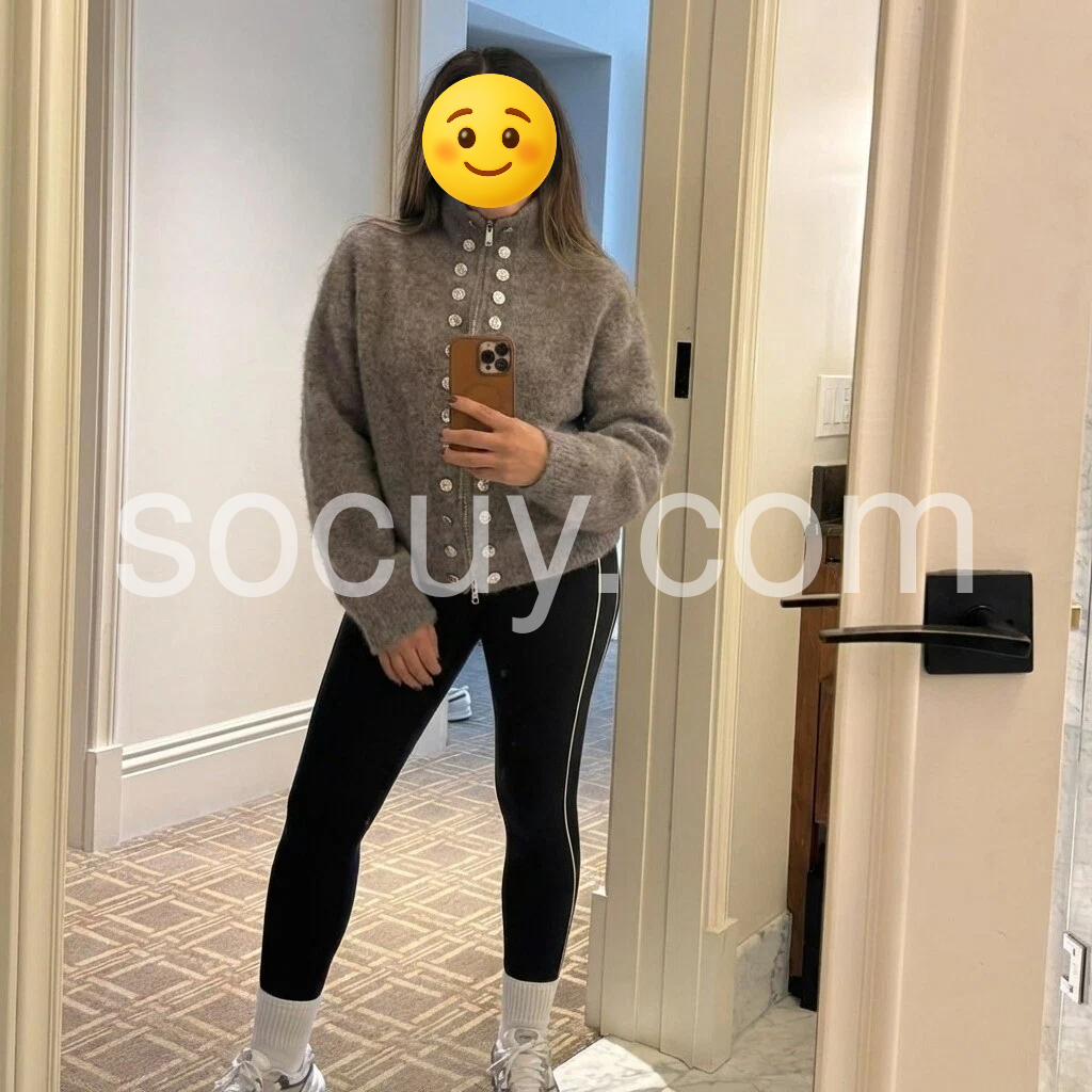 The Fuzzy Grey High Neck Long Sleeve Cardigan is a cozy and stylish addition to any wardrobe. Made with a high neck and long sleeves, it provides warmth and comfort during colder months. The fuzzy texture adds a touch of softness and style, making it a versatile piece for any outfit.