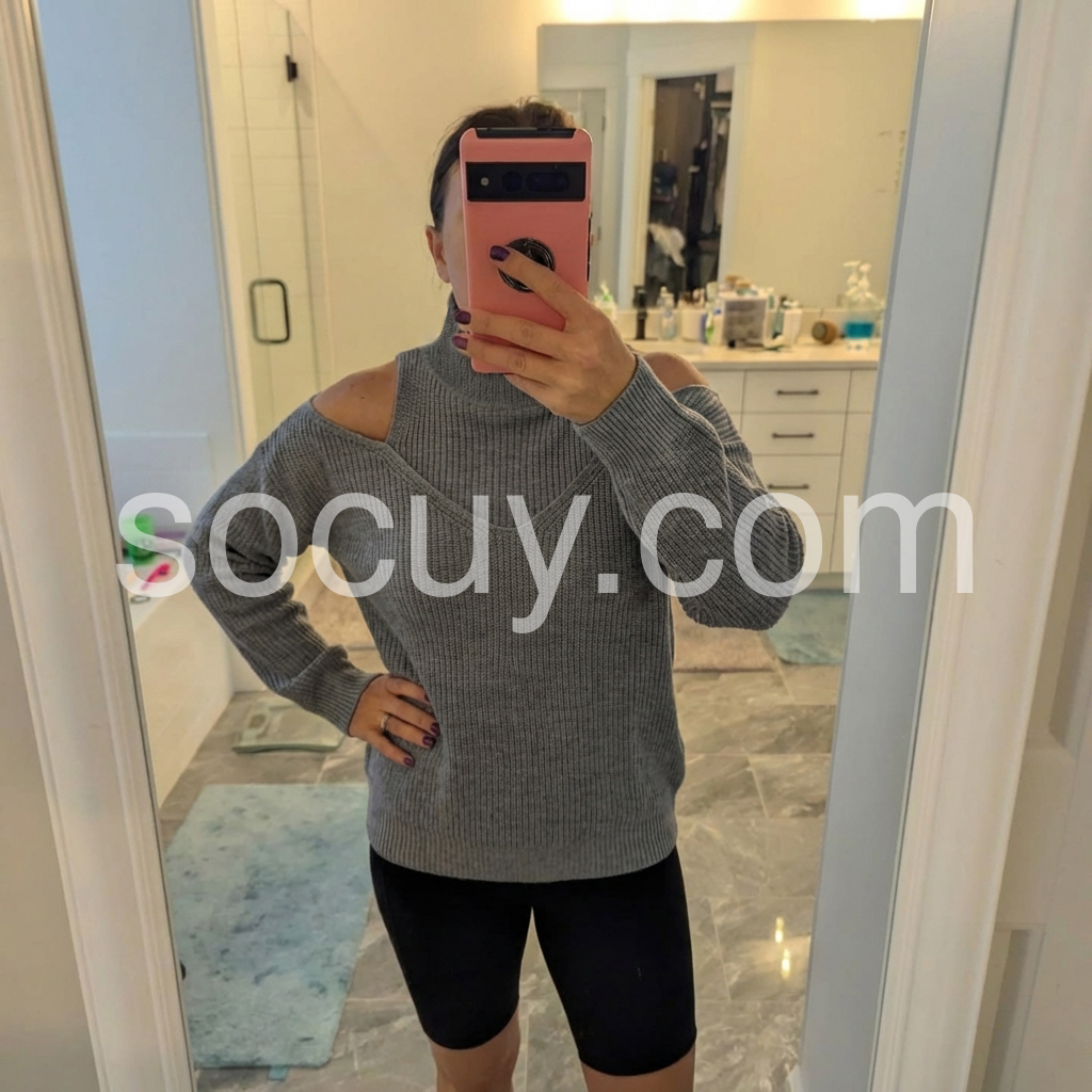 Elevate your wardrobe with this chic grey plain sweater featuring a sophisticated cold shoulder detail. Crafted for both comfort and style, its minimalist design pairs effortlessly with various outfits, while the cold shoulder cutouts add a modern, fashion-forward edge. Perfect for layering or wearing alone, this sweater blends timeless simplicity with contemporary flair.