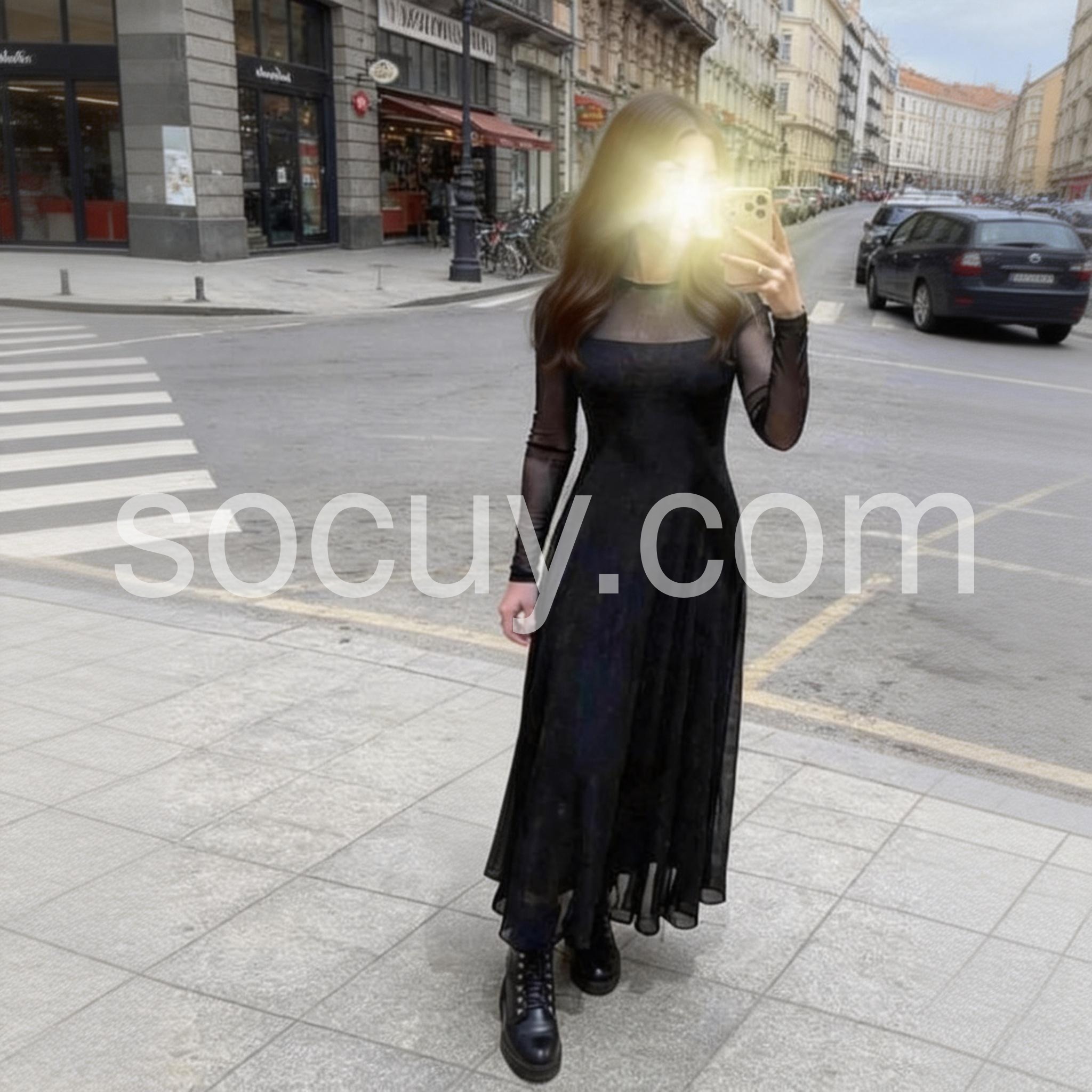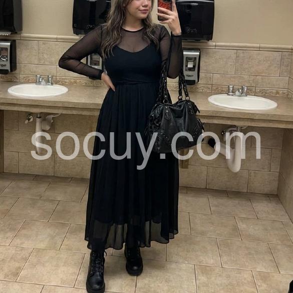 Timeless elegance meets contemporary comfort in this vintage-inspired black maxi dress. The classic round neckline and streamlined silhouette create a sophisticated foundation for any wardrobe, while the midi length offers versatile styling options for both casual and formal occasions. Crafted with attention to detail, this piece captures the refined aesthetic of vintage fashion without compromising on modern wearability. Perfect for those who appreciate understated luxury and enduring style.