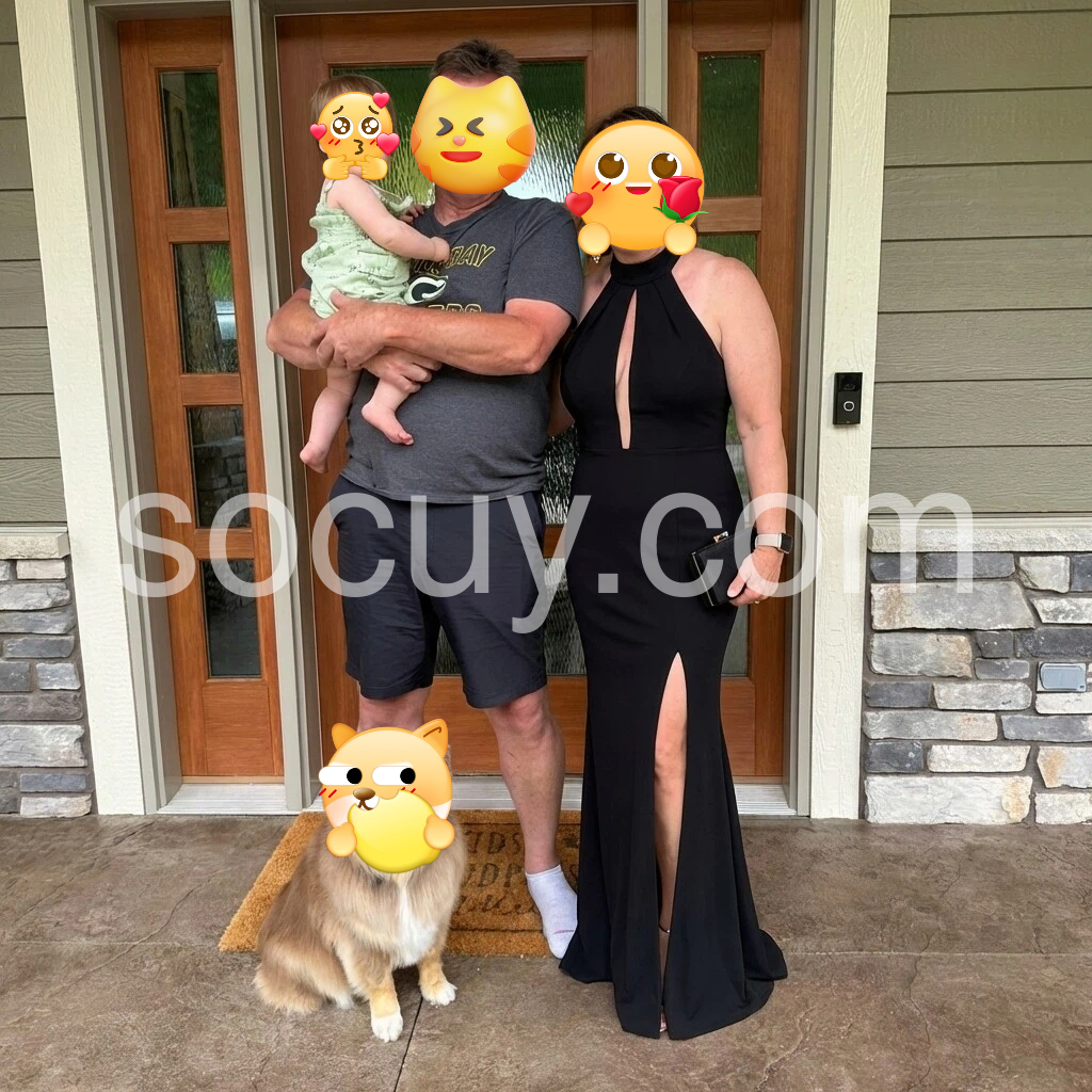 This is the most stunning dress I’ve ever owned! The keyhole cutout is such a chic detail, the bodycon fit is incredibly flattering, and the high slit elongates my legs perfectly. The fabric is soft and stretchy, comfortable enough to wear all night, and the halter neck stays in place without digging in. I’ve gotten so many requests for the link