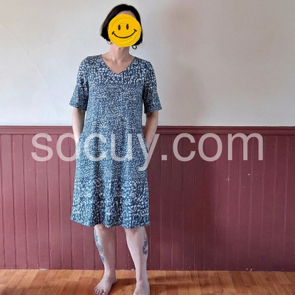This breezy shift dress is made for sunny days. The soft V-neck and flared mid-length sleeves keep you cool while adding a delicate touch.