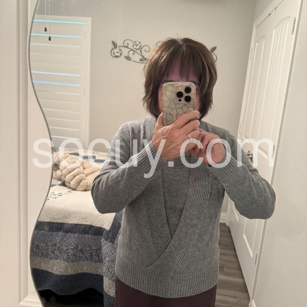 This dark gray sweater features a twofer style, perfect for those who love a mod layered look. Professional, casual, and yet still dressy, this versatile plunging v-neck sweater top and faux cami underneath provide the right amount of detail with long capped sleeves. Machine wash normal with light colors or hand wash. May be hung up to dry or lay flat. Light ironing if needed.
