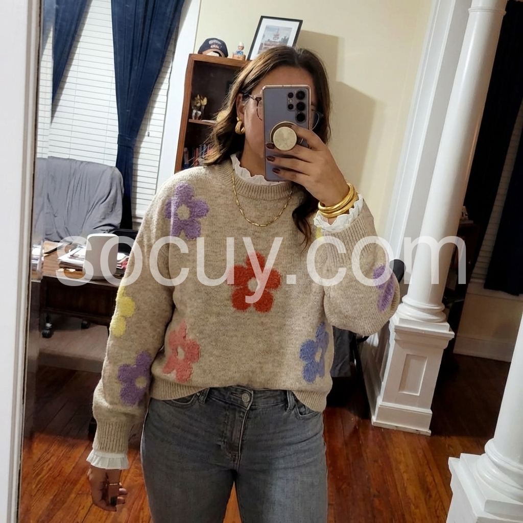 This elegant apricot round neck sweater is a stylish addition to any wardrobe. Made from high-quality materials, it offers both comfort and sophistication. The round neckline adds a touch of elegance, while the color complements a variety of outfits. Perfect for any occasion, this sweater is a must-have for fashion-forward individuals.