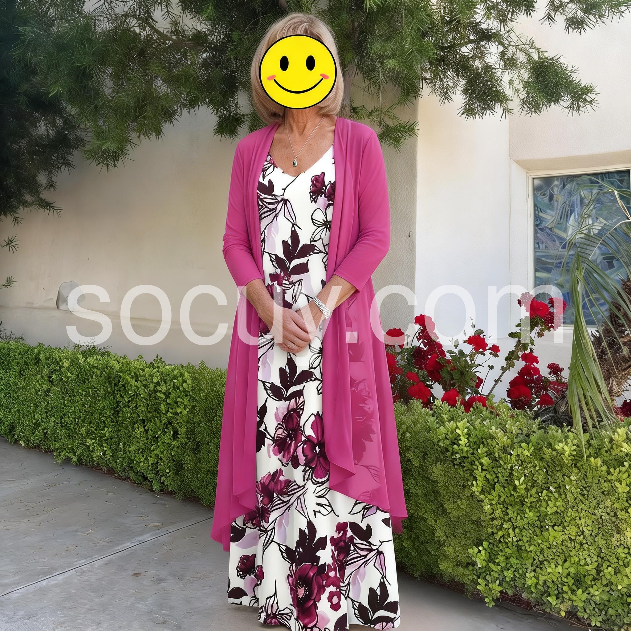 This elegant maxi dress with a matching jacket features a beautiful romantic floral print. Perfect for any special occasion, it will make you stand out with its unique and stylish design. Made with high-quality materials, it offers both comfort and sophistication. Elevate your wardrobe with this must-have dress.