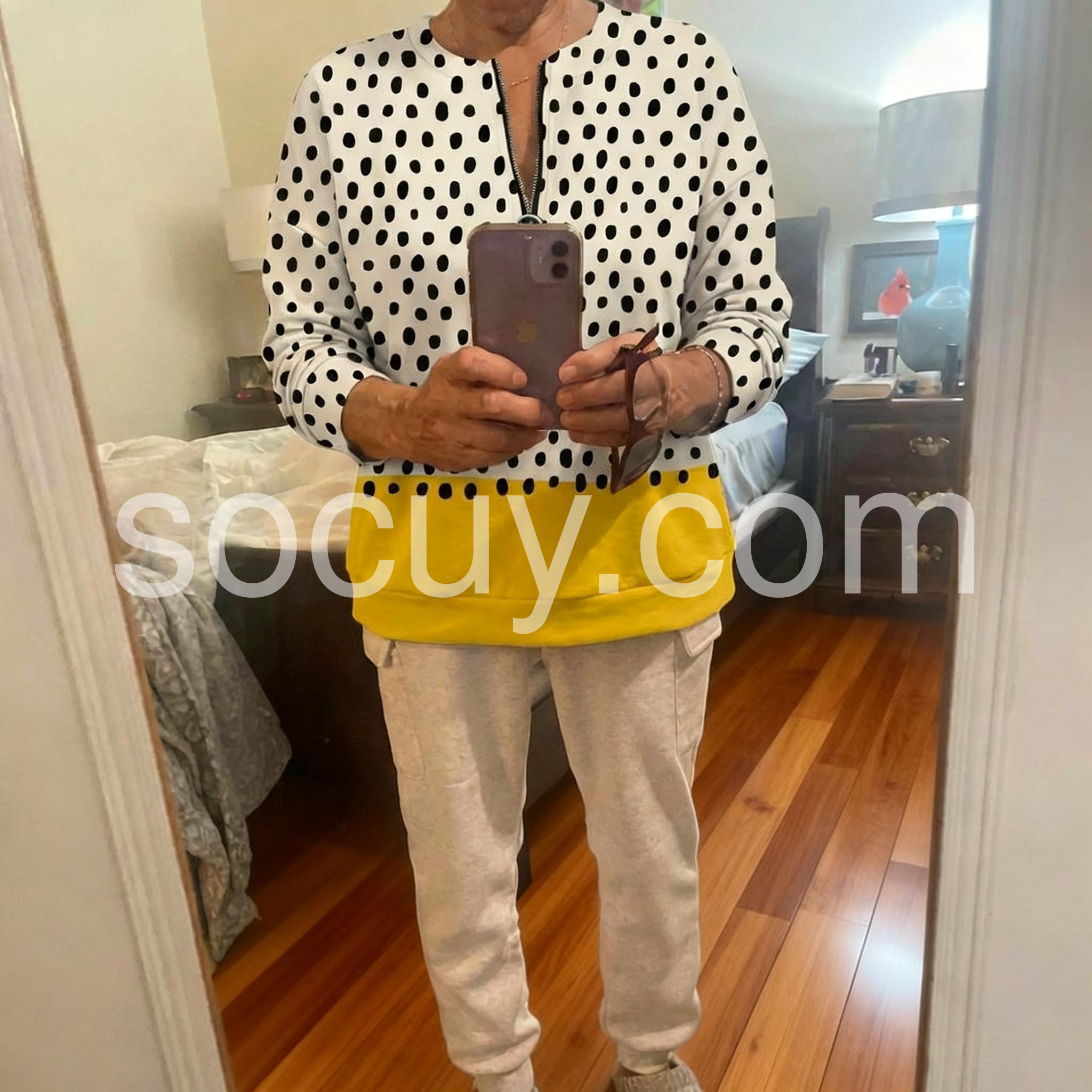 Elevate your wardrobe with this Chic Polka Dot Long Sleeve Top, designed for a refined yet playful look. Crafted with attention to detail, its timeless polka dot pattern pairs effortlessly with both casual and formal outfits. The long sleeves provide comfortable coverage, making it ideal for transitional weather or layering. This top combines classic style with versatile wearability, perfect for those seeking a polished and sophisticated addition to their collection.